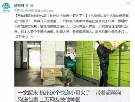 数月前,独自送件的中通小哥李大马与一个棕色的小家伙偶然相遇。